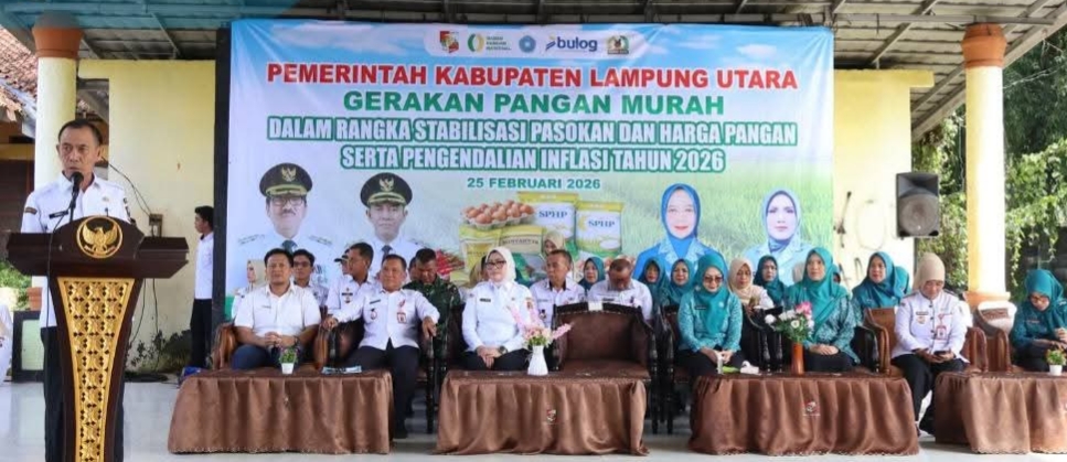 Kotabumi,NB- Pemerintah Kabupaten Lampung Utara mengadakan Gerakan Pangan Murah yang dipusatkan di Taman Olah Seni (TS) Rabu (25/2/2026). Ajang Pasar Murah Langsung diserbu masyarakat.