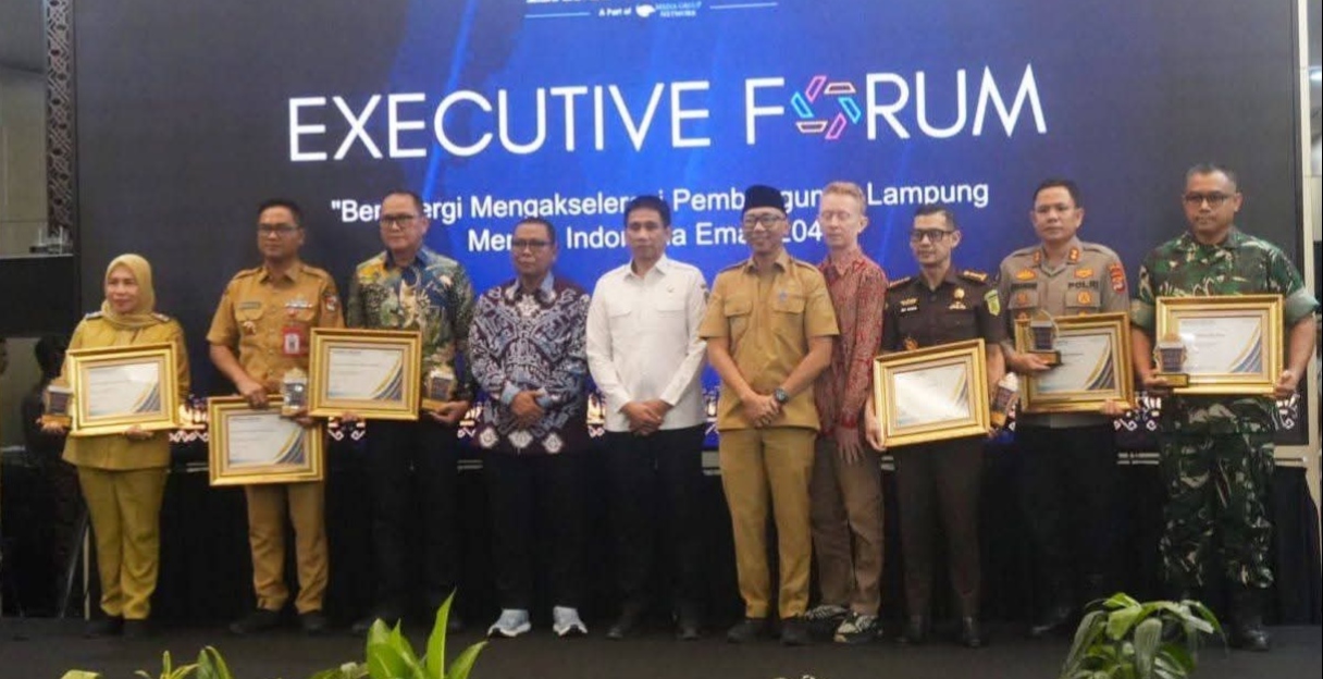 Penghargaan diserahkan oleh Gubernur Lampung Rahmat Mirzani Djausal dan diterima oleh Bupati Lampung Utara yang diwakili Kepala Dinas Komunikasi dan Informatika Gunaido Uthama, S.IP., M.M., saat acara Pembukaan Lampung Post Ekonomi Eksekutif Forum 2026 di Emersia Hotel Bandarlampung,